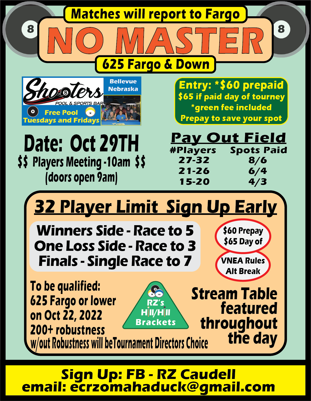 No Master - 625 Fargo and Down w/200+ robustness Players Meeting before Bracket Draw